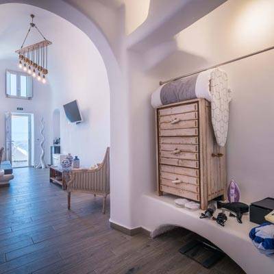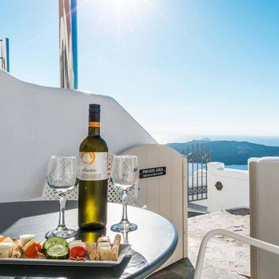 Perched on a cliff with stunning views of the Caldera, Angel Luxury Suites are situated in Fira, the vibrant capital of the island. Within walking distance, you will find some of the best restaurants/tavernas and cafés of Santorini.